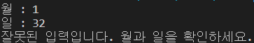 print("잘못된 입력입니다. 월과 일을 확인하세요.")