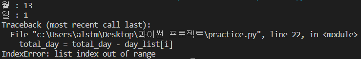 월을 13으로 했을 때 다음과 같은 에러가 뜨는데 어떻게 고쳐야 할지 모르겠습니다.